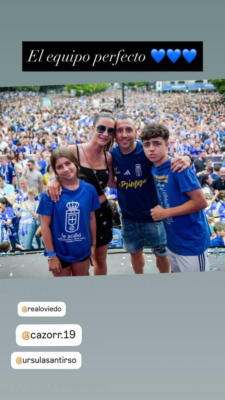皇家奥维耶多40岁中场卡索拉社媒晒出一家的合照,配文:“完美的团队。”